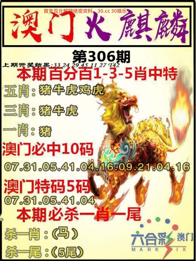 306期:✰绝杀三肖✰【猴羊虎】开:牛17准